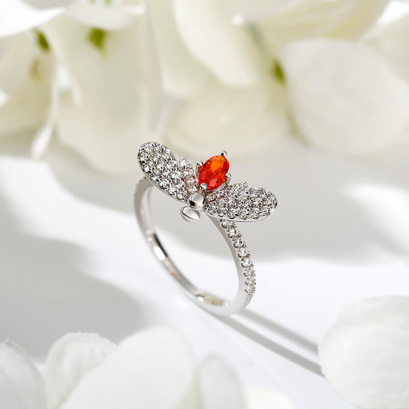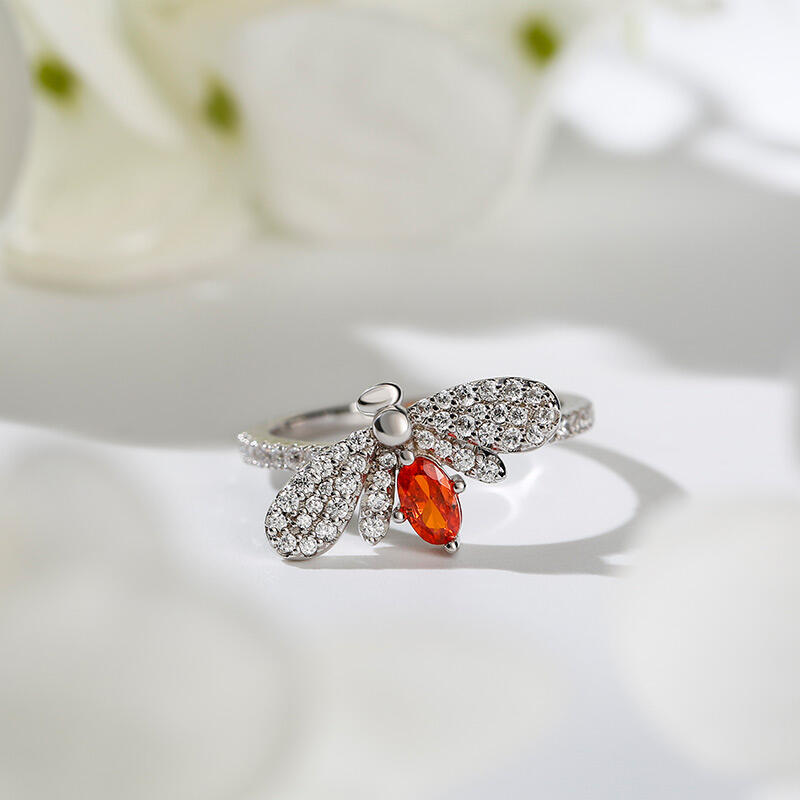 Be like the firefly who glows no matter how the darkness grows. Crafted in sterling silver, this ring features a firefly with a striking center stone and the wing paving sparking stones that shines as if in mid-flight. Additional stones form firefly shaped design to add more elegance to this ring. Dainty and shimmering, this ring is sure to cherish.