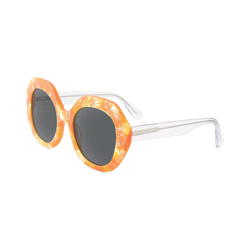 The trendy round sunglasses showcase a slightly cat-eye shaped design. The durable acetate frames paired with high-quality TAC polarized lenses ensure comfort and clear vision, catering for various uses in occasions like driving, fishing, sun bathing on the beach, and so forth. There are three colors for you to choose, black, orange tortoise and blue tortoise, all getting you in the trend.