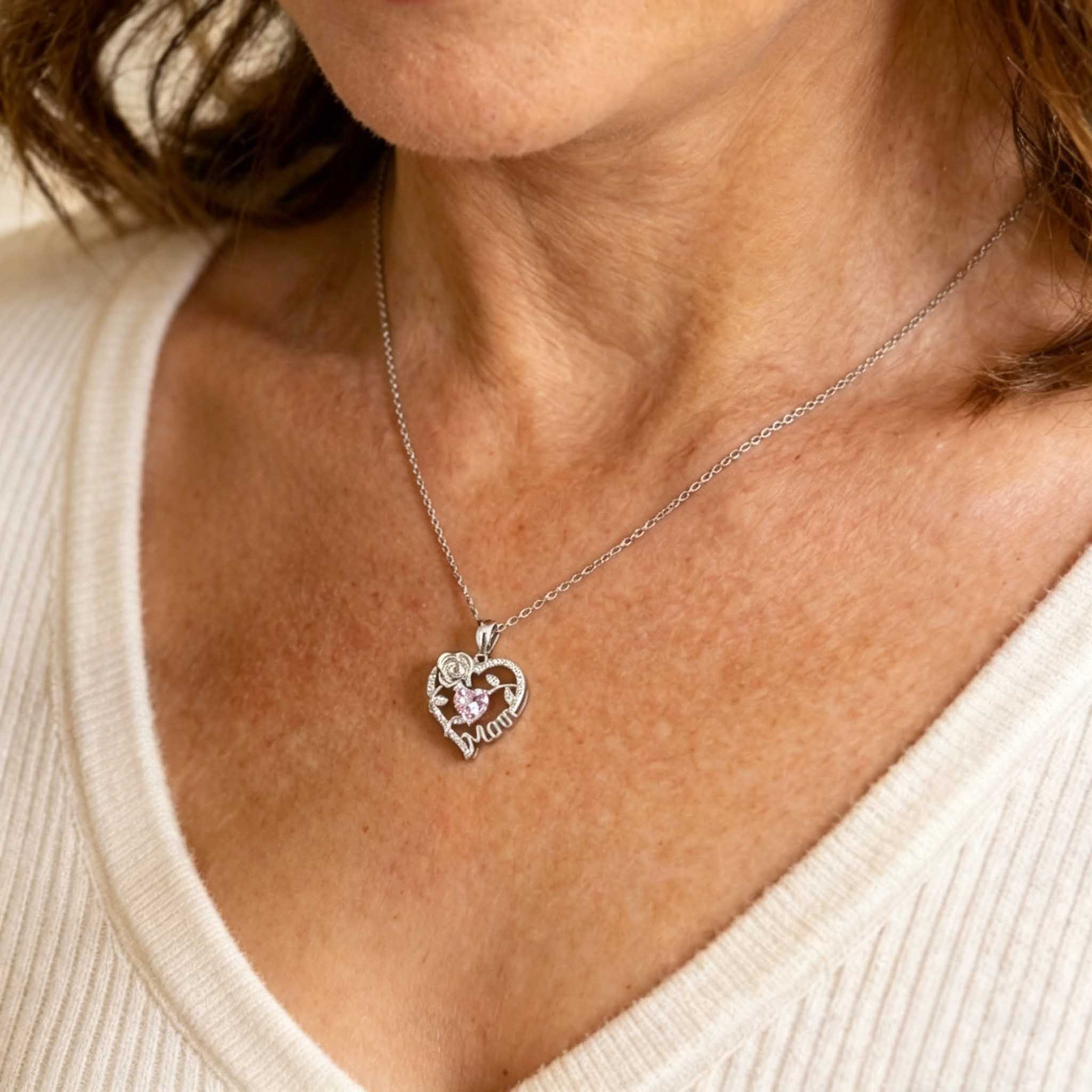 Jeulia Rose for Mom Heart Necklace Sterling Silver